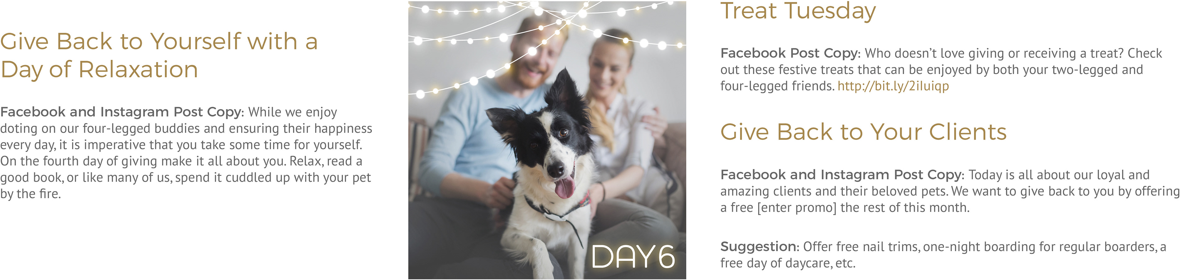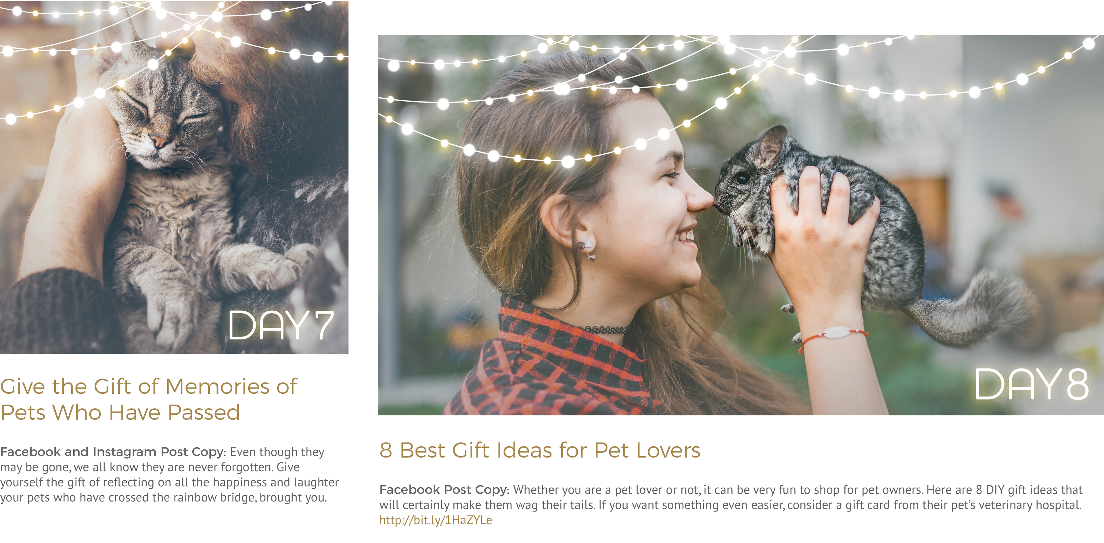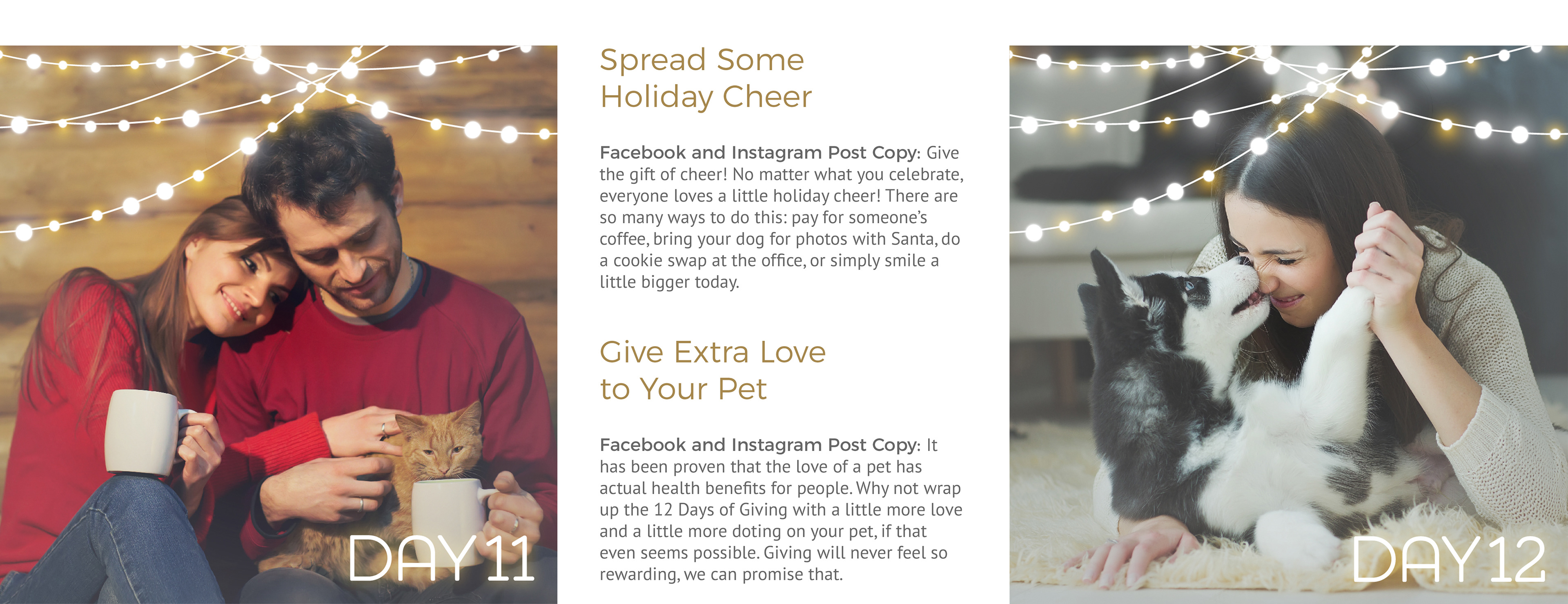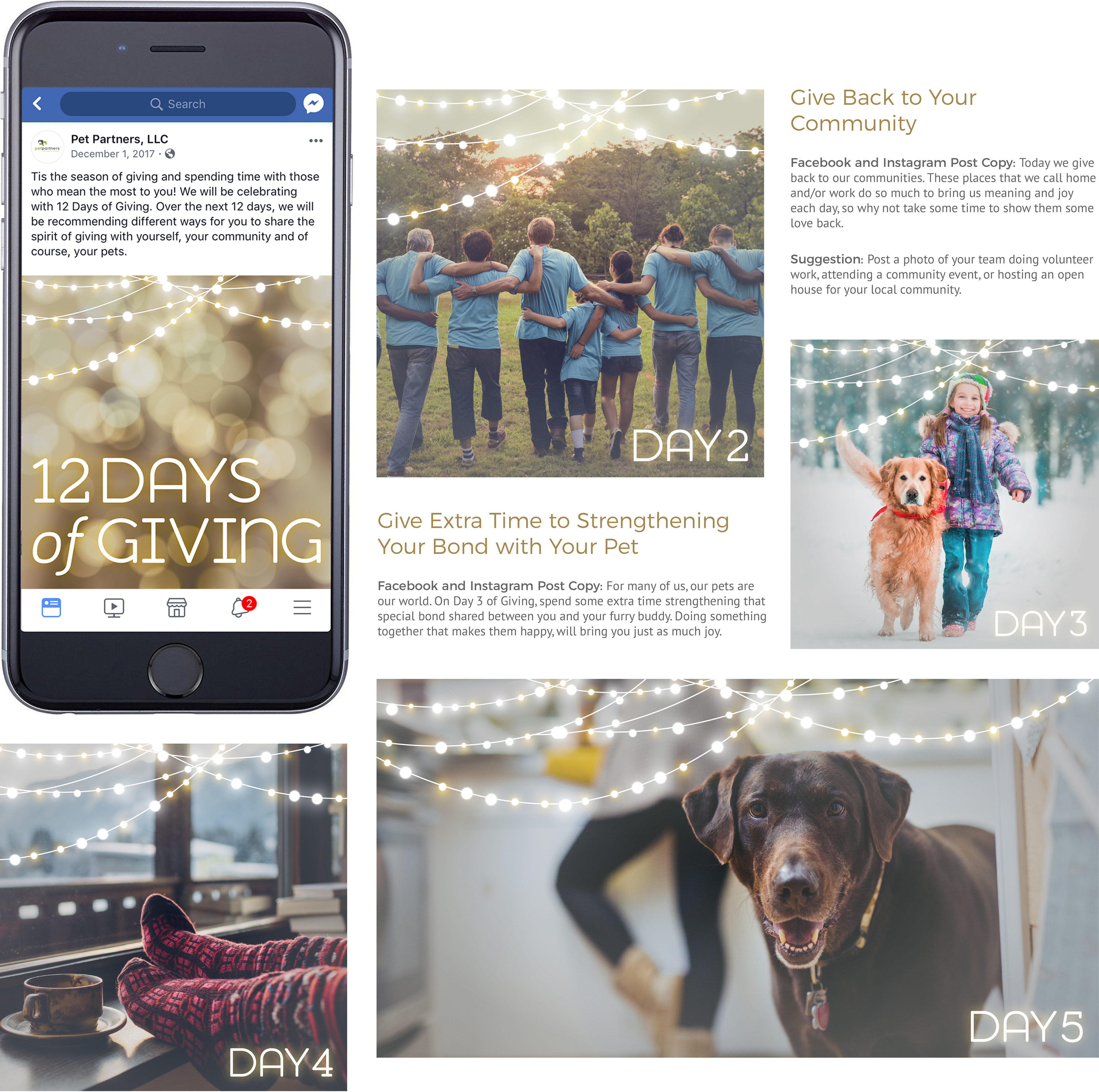 Social Media Campaign developed for Pet Partners' hospitals to share the spirit of giving throughout the 2017 Holiday Season. Winner of Graphic Design USA's 2018 Health + Wellness Design Award: Online Design.